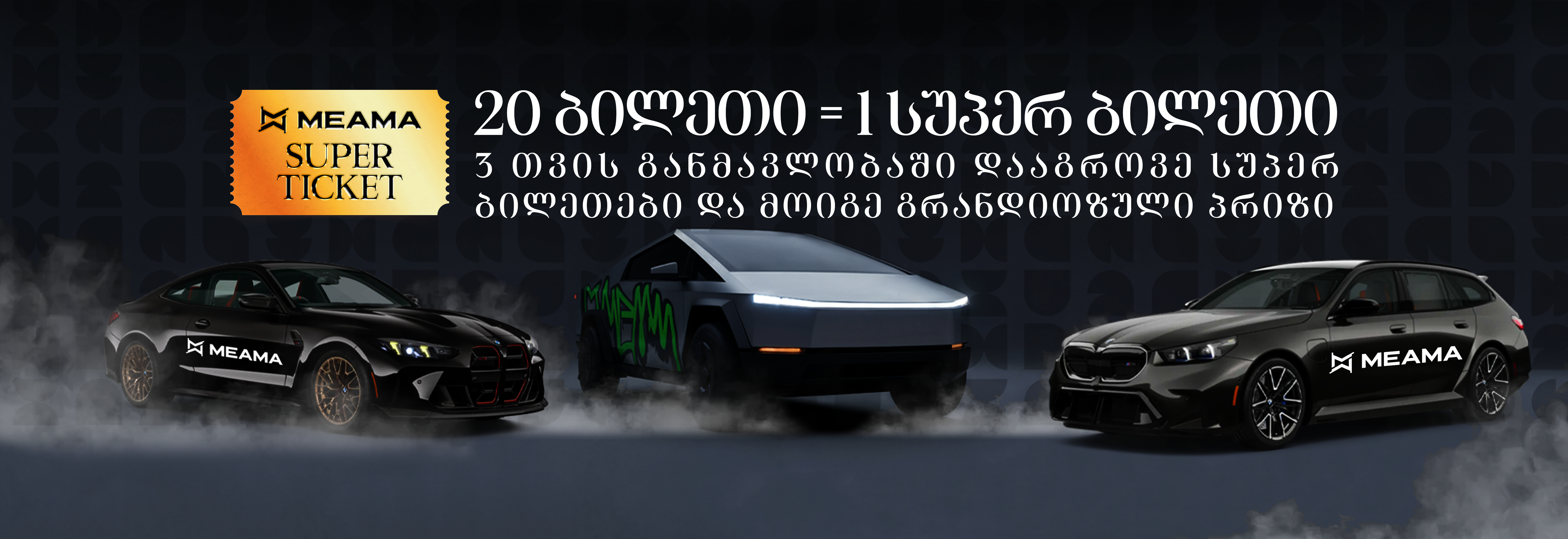 • MEAMA-ს ვებ-გვერდზე პროდუქციის შეძენისას გერიცხებათ გათამაშების ბილეთები, თითოეულ შენაძენზე.