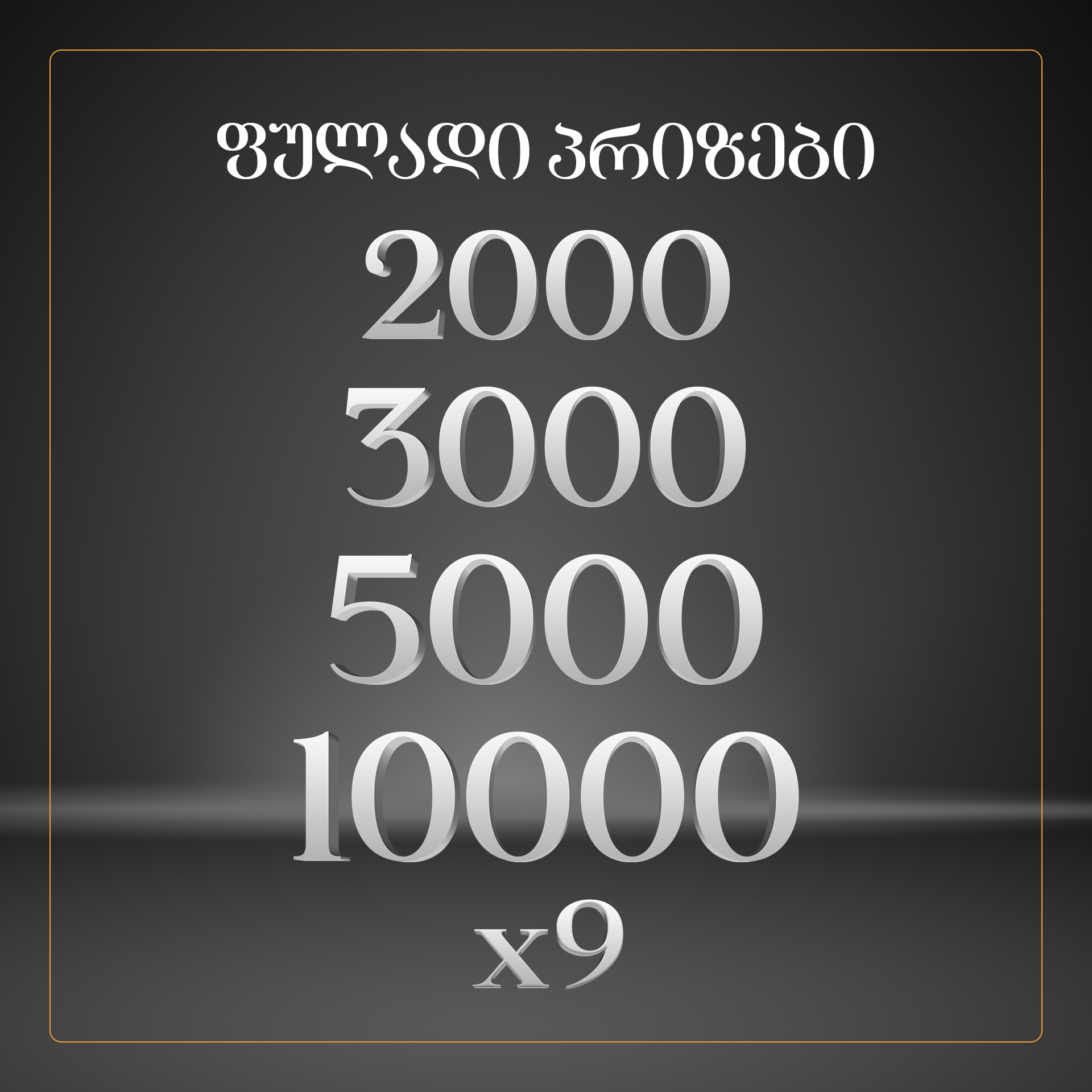 • 4 ფულადი პრიზი: 2000, 3000, 5000 და 10,000 ლარი